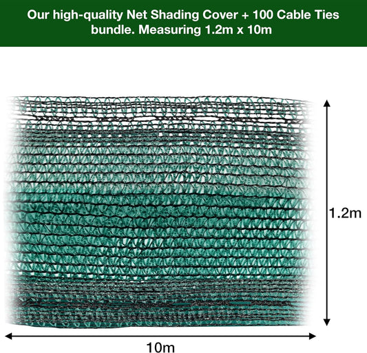Premium Net Shading Cover Screen + 100 Cable Ties Bundle | 1.2m x 10m | Protect Crops, Balconies, and Greenhouses | 55% Shading | UV Protection | Weatherproof