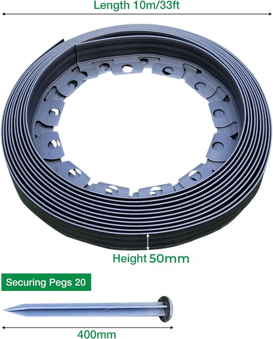 60mm Flexible Garden Lawn Edging Border Black -Complete with 20 Securing Pegs