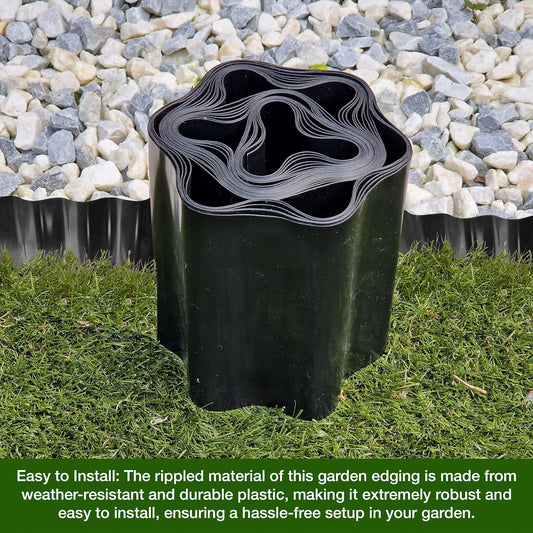 Black Flexible Plastic Lawn Edging 9 Metres - Durable, Weatherproof, and Frost-Resistant! 15cm