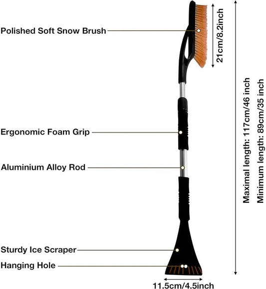 Heavy Duty 2-in-1 Car Ice Scraper & Snow Brush w/ Foam Grip & Telescopic Handle