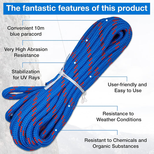 10mm Poly Braided Rope – 10m of Blue Line Cord – Reliable and Resilient Paracord for Multiple Tasks