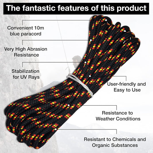 10mm Poly Braided Rope – 10m of Black Line Cord – Reliable and Resilient Paracord for Multiple Tasks
