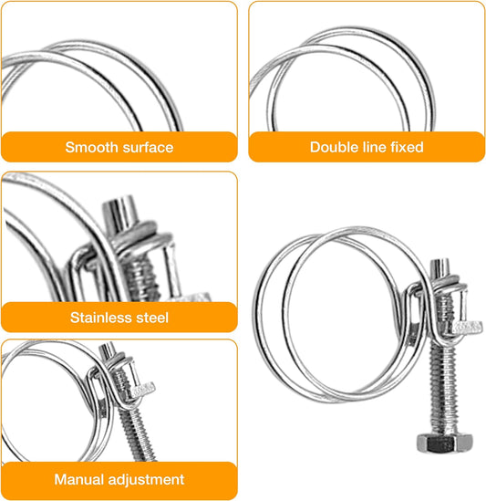 Hose Pipe Connector Set – 25mm Pond Hose Connector with 2 Wire Hose Clips – Pond Hose Pipe Joiner – Adjustable Hose Clamps with Screw Fitting for Standard 25-29mm Diameter Size