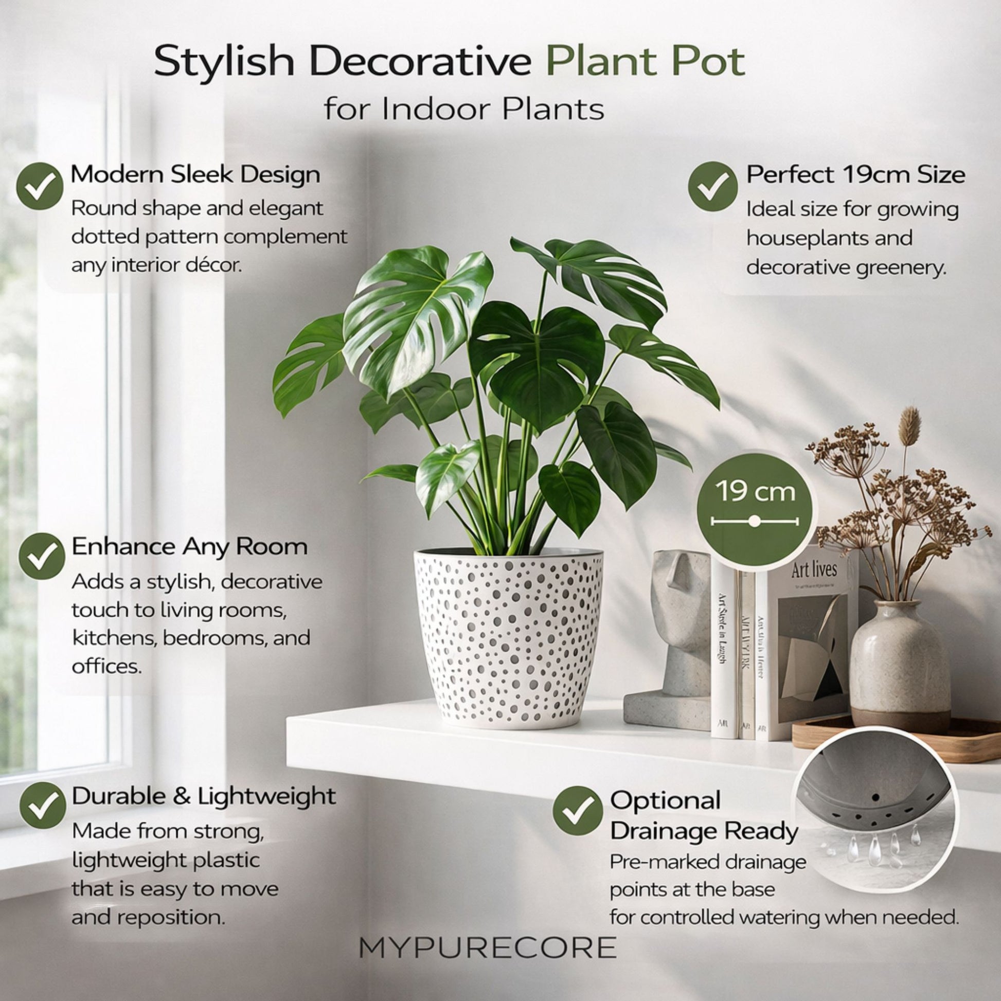 Enhance your home with the MYPURECORE decorative plant pot - designed to combine modern aesthetics, durable construction and practical everyday plant care. A stylish solution for displaying indoor plants, herbs and decorative greenery.