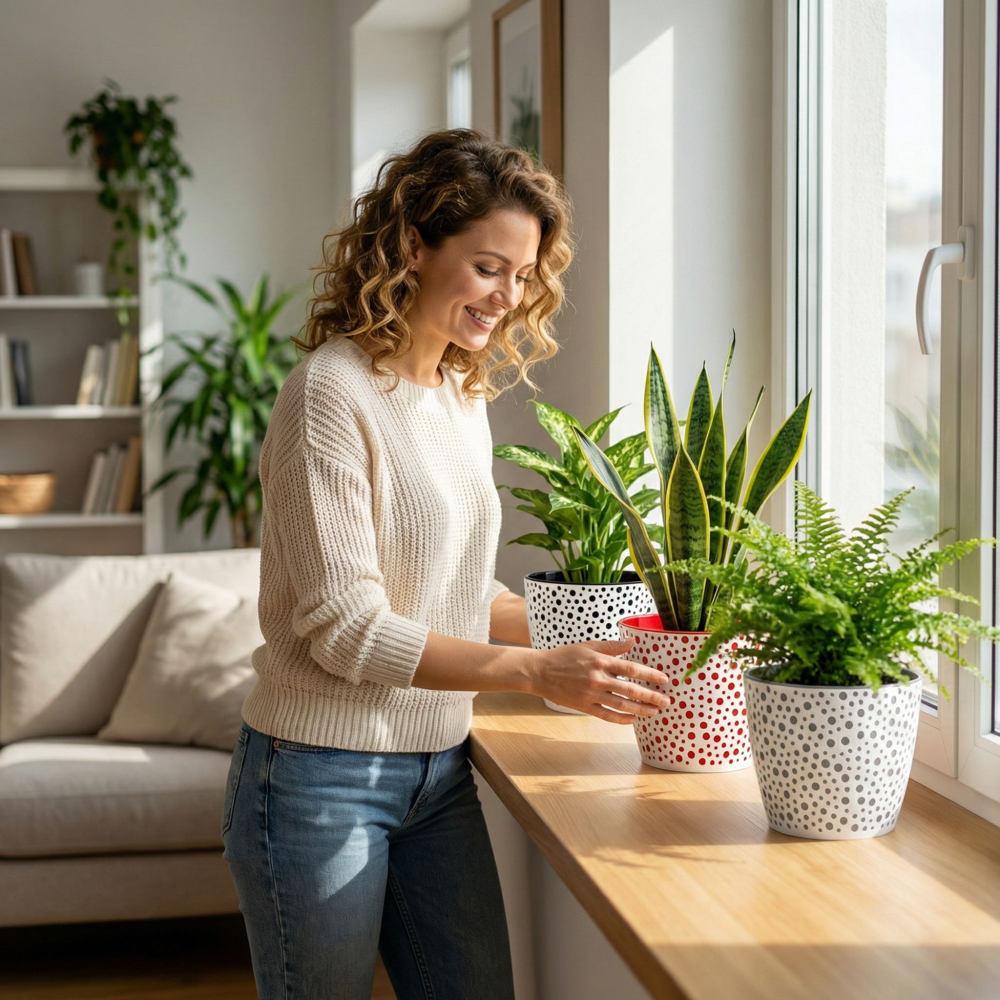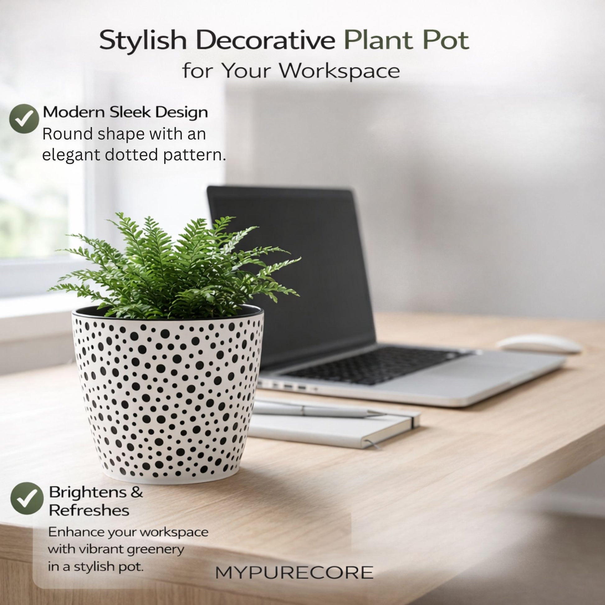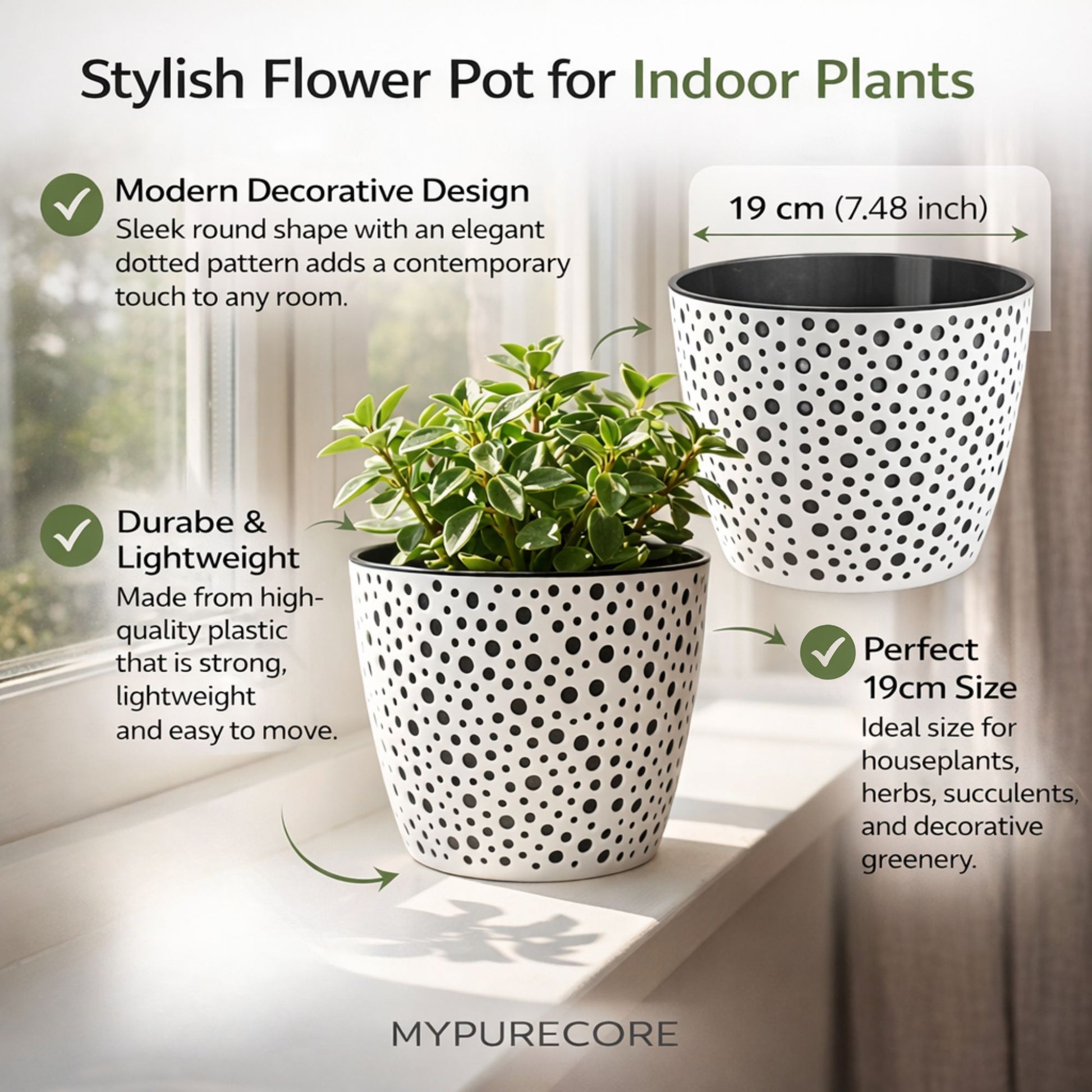 ★ MODERN DECORATIVE DESIGN: Stylish indoor plant pot with elegant dotted pattern adds a contemporary look to any space. This decorative flower pot enhances living rooms, kitchens, bedrooms and offices while beautifully displaying houseplants, herbs or decorative greenery.