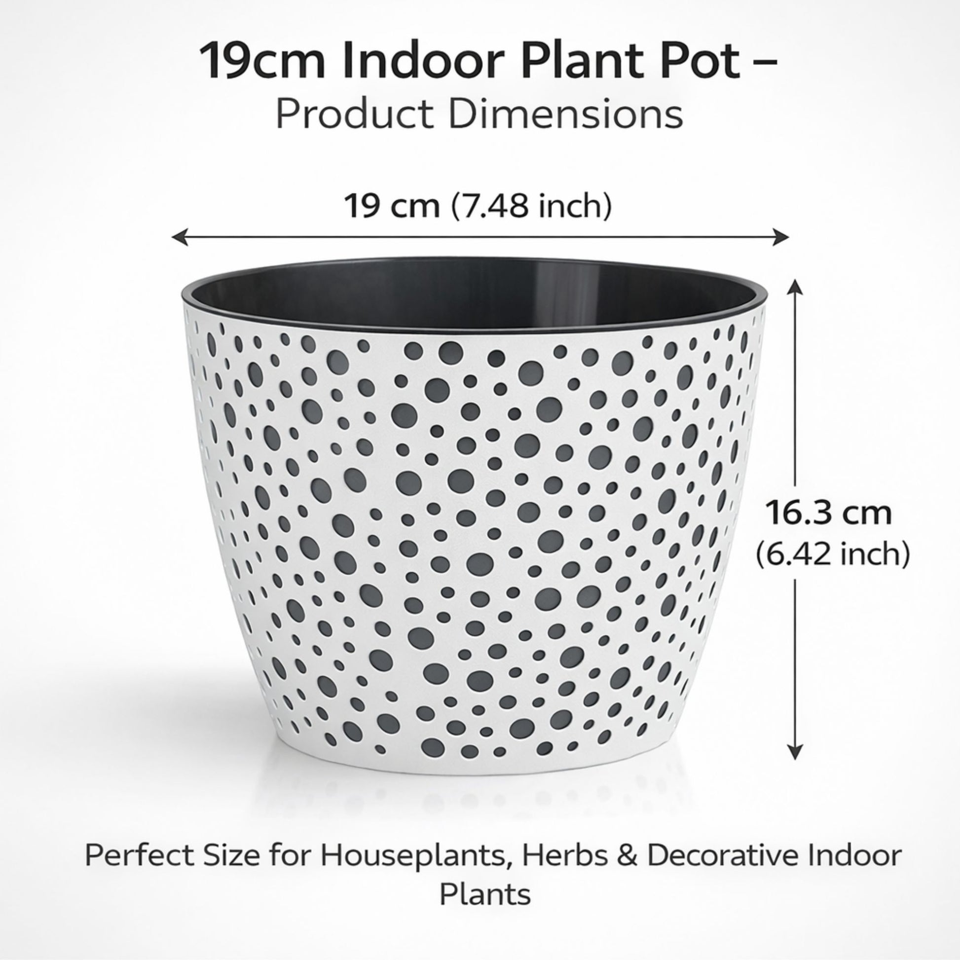 ★ PERFECT SIZE FOR INDOOR PLANTS: 19cm round plant pot ideal for small to medium houseplants, herbs, succulents and flowers. Suitable for windowsills, shelves, desks or kitchen counters, providing a practical and attractive planter for everyday indoor use.