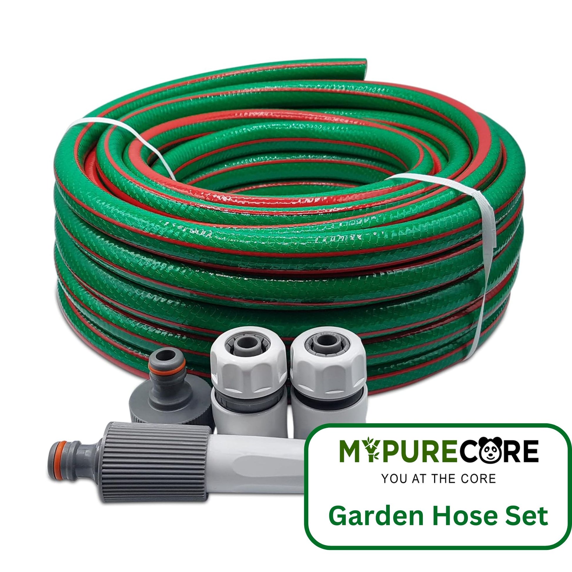 Premium garden hose with fitting set connectors for all seasons use ideal for watering, gardening and other outdoor needs!
