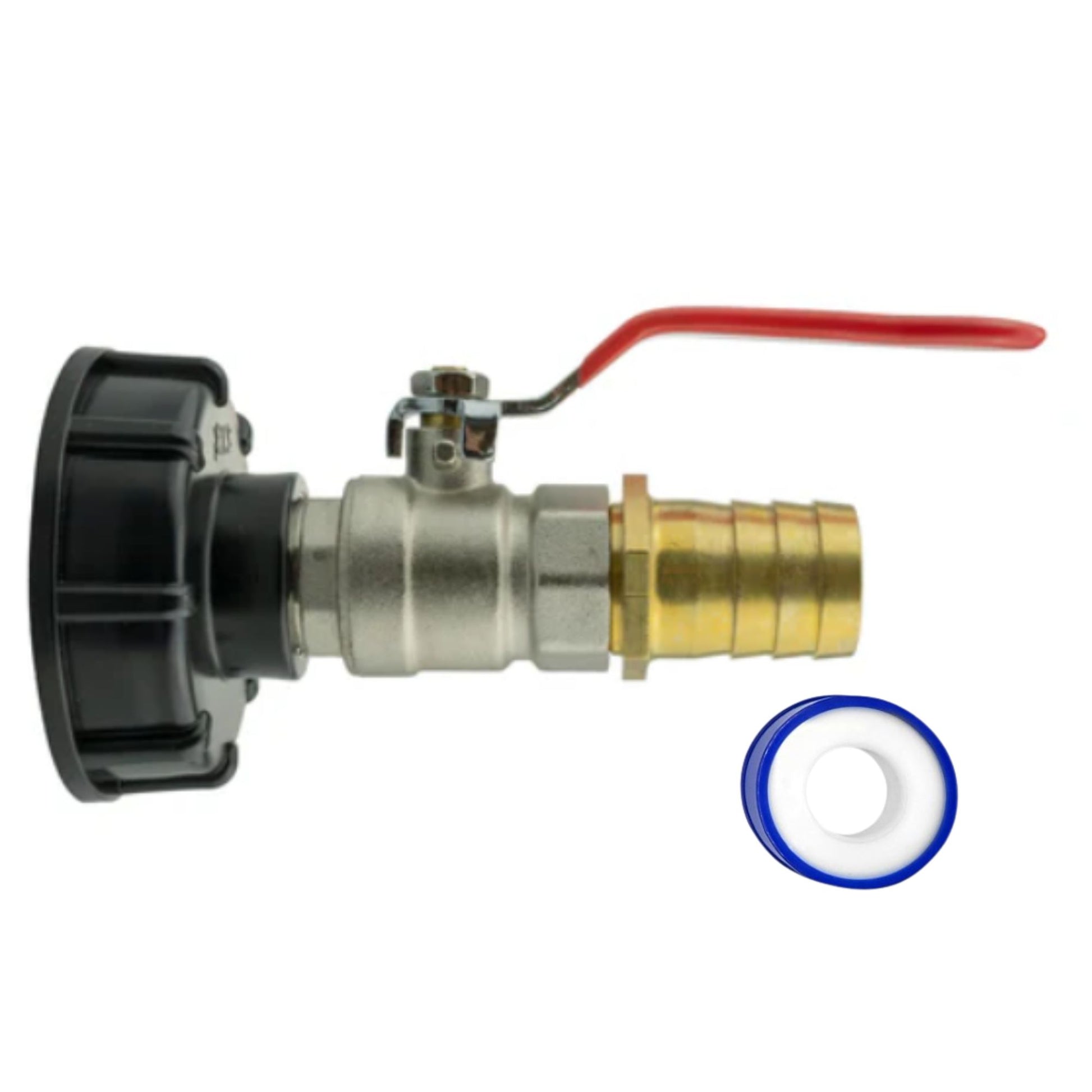 IBC 2” S60X6 Cap with Lever Valve & 25mm Brass Barb - and PTFE Tape – Durable Leak-Proof Plumbing Solution