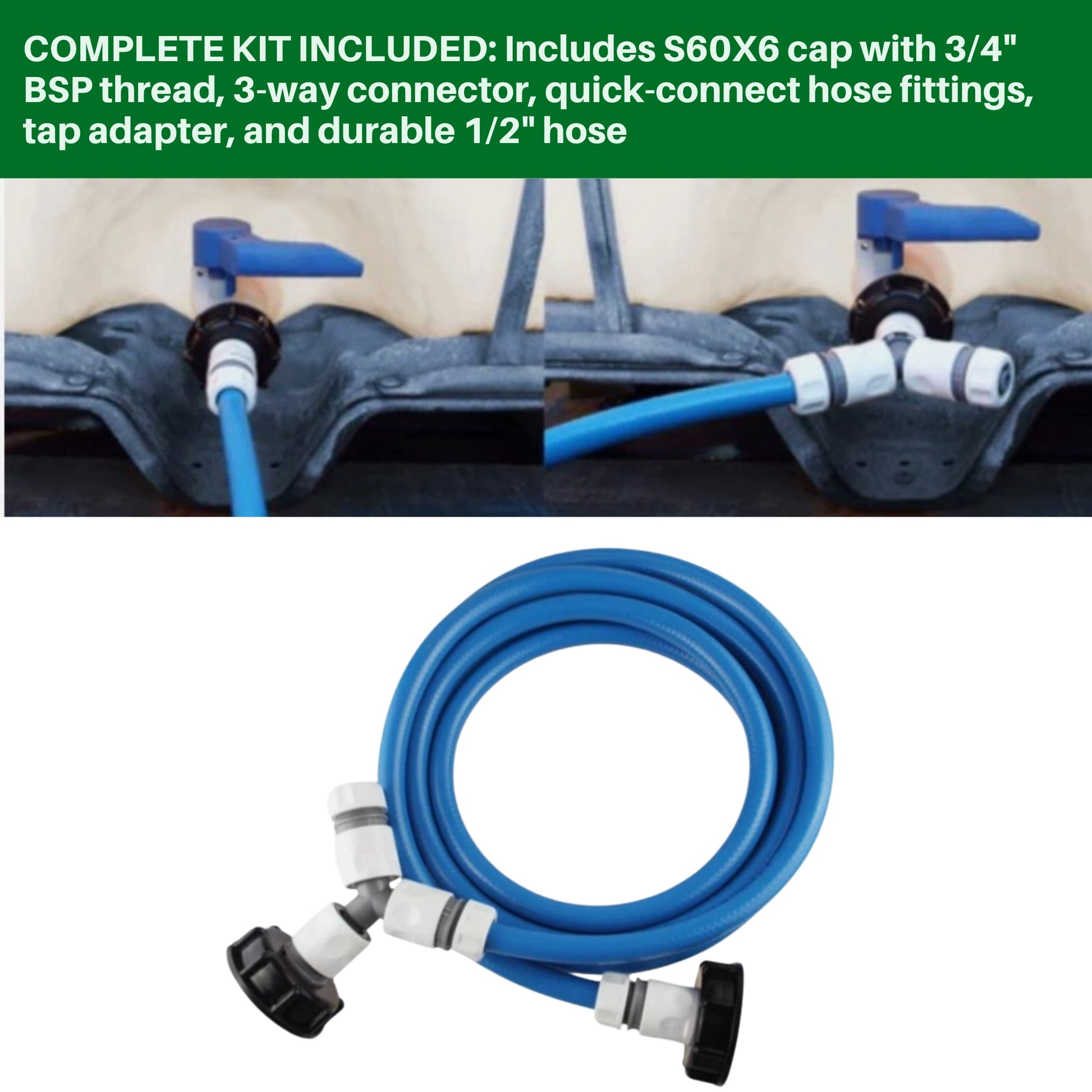 ★ PREMIUM QUALITY MATERIALS: From the precision-moulded S60X6 cap with integrated ¾” BSP thread to the reinforced ½” blue water hose, all parts are crafted with high-grade, weather-resistant materials.