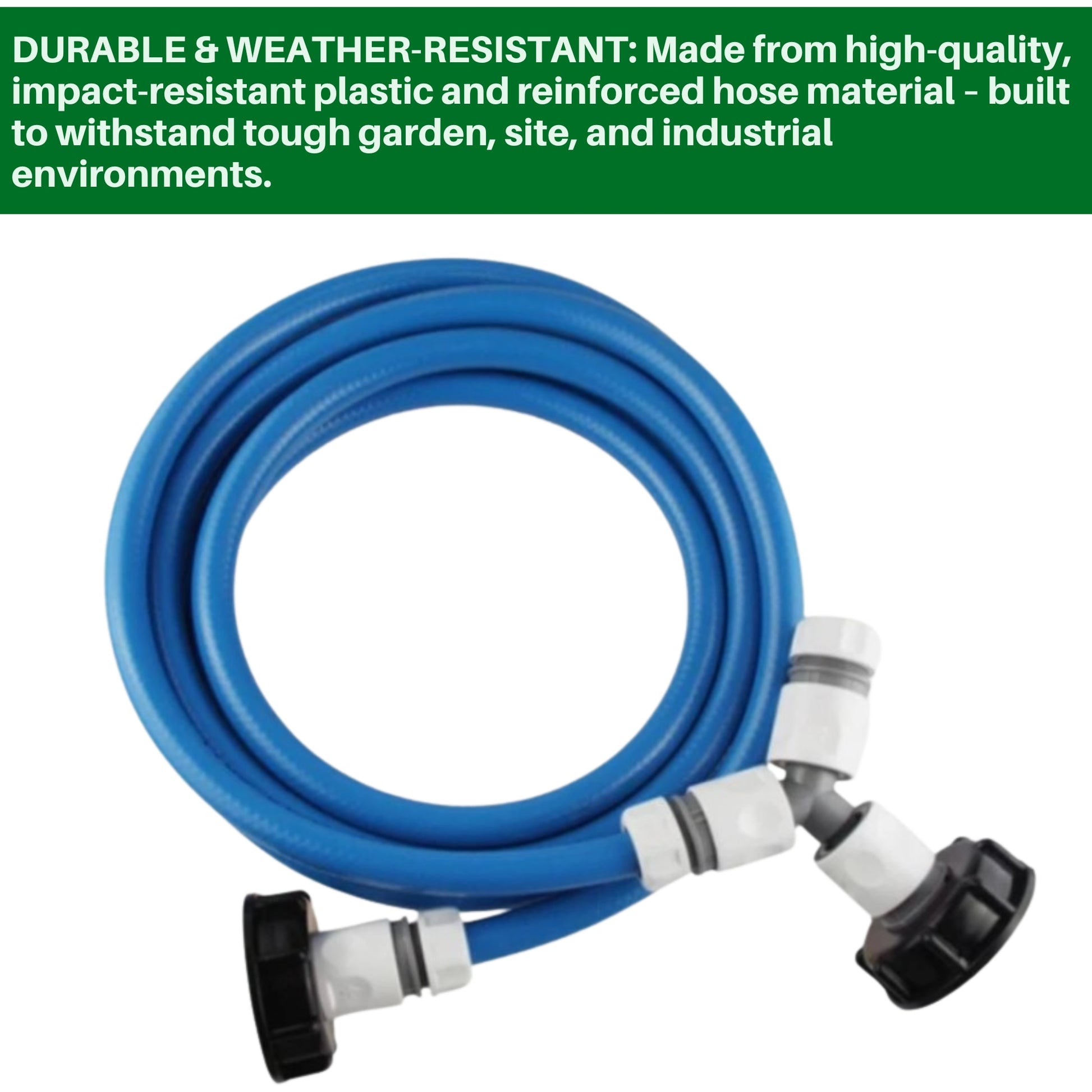 ★ VERSATILE & EASY TO USE: Designed for practicality, versatility, and durability, the IBC Tank Connection Kit - is your all-in-one solution for connecting hoses to IBC tanks quickly and securely. This comprehensive set includes an S60X6 cap with a built-in ¾” BSP thread, a snap-on adapter, three-way connector, multiple female hose connectors, and a reinforced ½” hose pipe (choose from 2m to 5m).