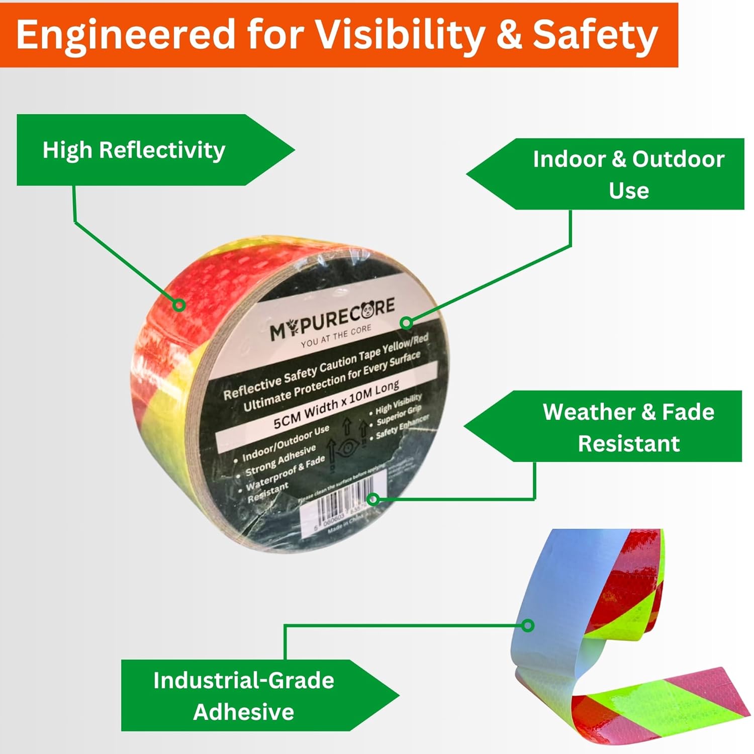 ★ MULTIPURPOSE SAFETY USE: Use as hazard marking tape, reflective caution tape, or warning stripe in warehouses, garages, construction sites, or industrial settings to improve workplace safety and awareness.