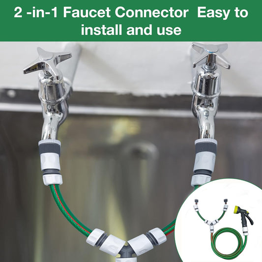 Heavy-Duty Metal Garden Hose Hanger Set with 8-Pattern Spray Gun & Double Male Hose Connector