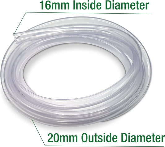 Flexible Hose Pipe 16mm Inside Diameter 20mm Outside Diameter – 4 Metres Clear PVC Food Grade Pipe