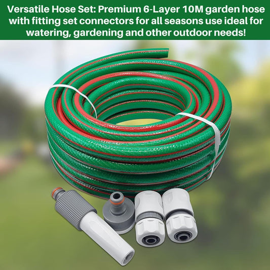 Premium Garden Hose with 2 Hose Connectors – Green Flexible Hose for All Seasons Use – 6-Layer PVC Hose with Durable Reinforcement – 3m Pressure Hose Ideal for Watering, Gardening.