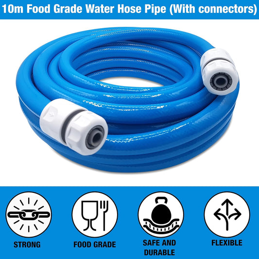 Water Hose – Premium Food Grade Water Hose with Hose Connector Set – 3-ply Hose Pipe for Caravan, Motorhome and Boat – ½-inch Standard Hose Size – Click-Lock Type Connectors – 10m