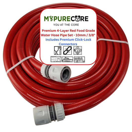 Premium 3-Layer Food Grade Water Hose Pipe - 10m 1/2" Includes Faucet, Double Male & Click-Lock Connectors | Campervan Accessories