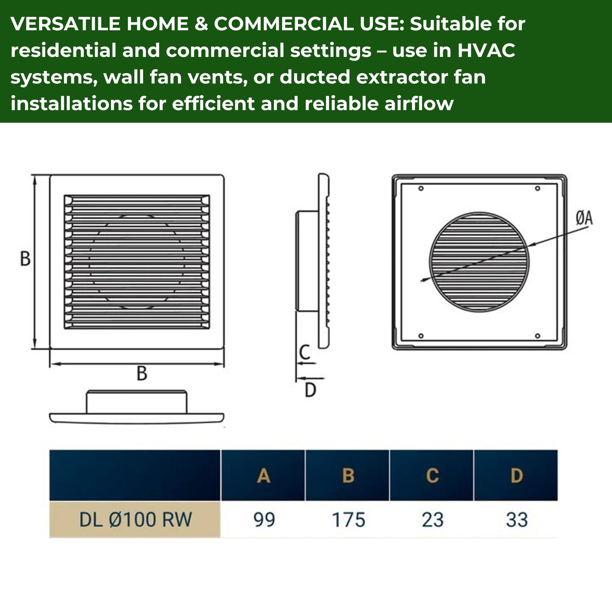 ★ VERSATILE HOME & COMMERCIAL USE: Suitable for residential and commercial settings – use in HVAC systems, wall fan vents, or ducted extractor fan installations for efficient and reliable airflow management.