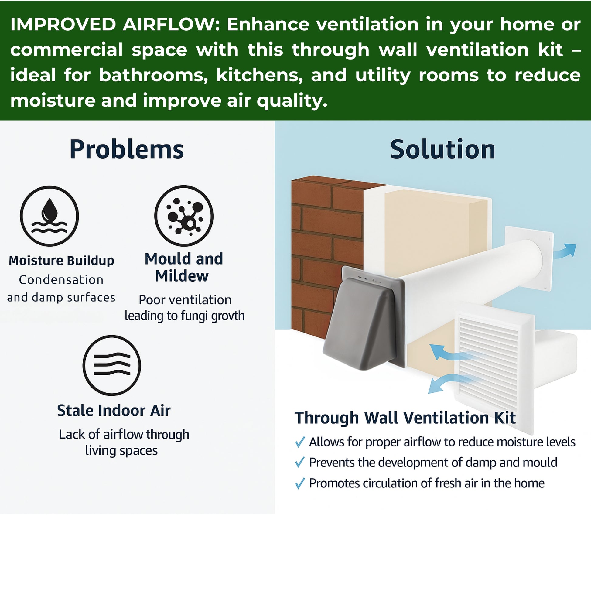 ★ IMPROVED AIRFLOW: Enhance ventilation in your home or commercial space with this through wall ventilation kit – ideal for bathrooms, kitchens, and utility rooms to reduce moisture and improve air quality.